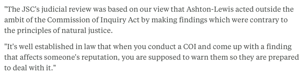 QUOTE: “I believe the Attorney-General’s office, which was defending the COI, realised the allegations were unfounded and decided the best way forward was to try and arrive at a settlement.”