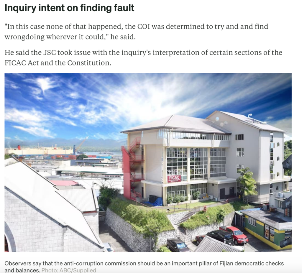QUOTE: Fa said the FICAC Act stipulated the JSC’s role was to advise the president on who should be appointed as FICAC commissioner. For some reason in this particular case, Ashton-Lewis said that that function could also be carried out by the Prime Minister, which undermined the JSC’s powers to conduct its constitutional function,” he said.