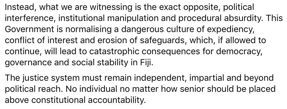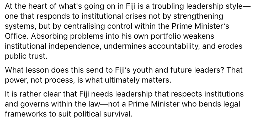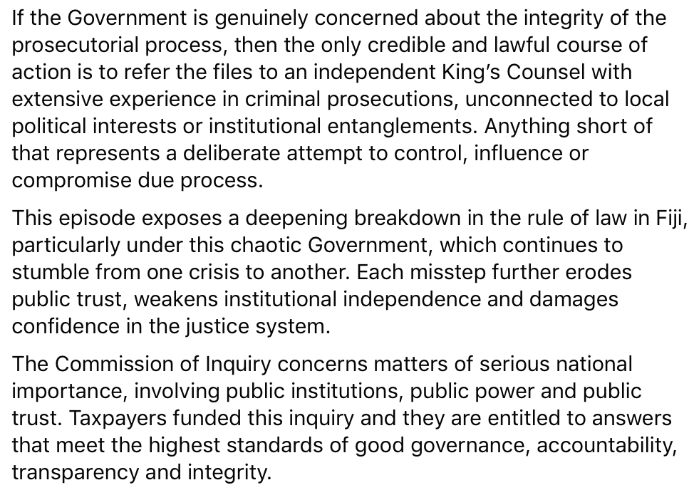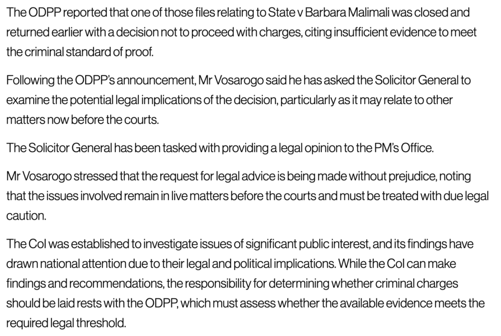 2/ At the same time as the RNZ interview has appeared, Rabuka’s lieutenant, Filimoni Vosarogo, is asking for the details of the decision by the Acting DPP, Nancy Tikoisuva, not to prosecute any of the 12 cases arising from the COI that were investigated by the police. Why is Vosarogo asking for this? He has nothing to do with the criminal justice system, having been prevented from becoming Attorney General because he was three times found guilty of professional misconduct by the Independent Legal Services Commission.