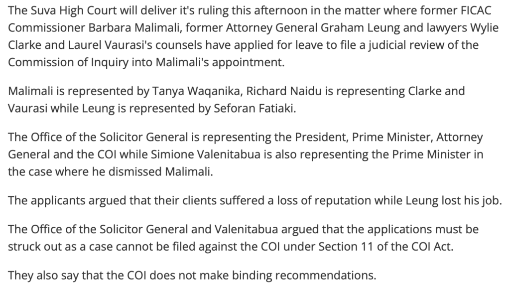 Don’t know if people realise that Fijian lawyers are now some of the best in the world. That is on full display in the CoI saga and in the government machinery.