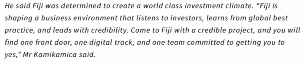 Fact: Any investor will tell you that if you come to Fiji with a credible project, you will find the same bureaucratic impediments and frustrations with this government as the last. But with one important difference – the added frustration of a government mired in scandal, infighting and constantly undermining the rule of law on which sound investment ultimately depends – the confidence that when you get into a scrape with the authorities, you will get a fair hearing in the courts.