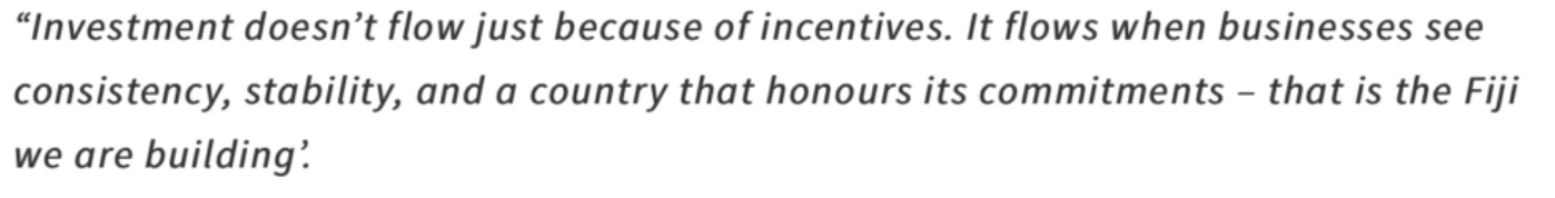 Fact: Any investor will tell you that if you come to Fiji with a credible project, you will find the same bureaucratic impediments and frustrations with this government as the last. But with one important difference – the added frustration of a government mired in scandal, infighting and constantly undermining the rule of law on which sound investment ultimately depends – the confidence that when you get into a scrape with the authorities, you will get a fair hearing in the courts.