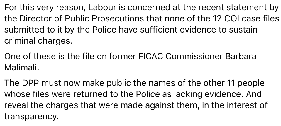 9/ And perhaps the greatest reason Richard Naidu and his coterie should be faced down is this: Whatever has happened at the ODPP, matters arising from the CoI are still being investigated by FICAC. And the word from FICAC HQ is that charges are still to be laid, on top of those which have already been laid against the two sidelined deputy prime ministers, Manoa Kamikamica and Biman Prasad.