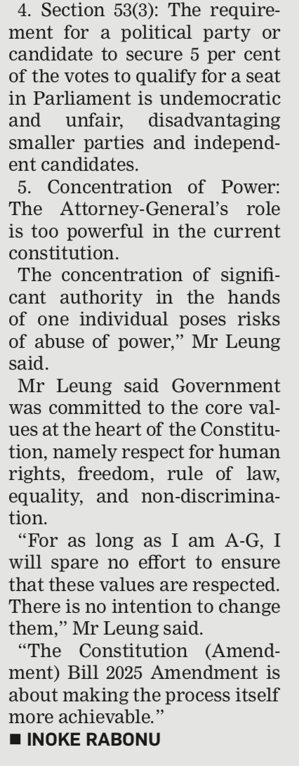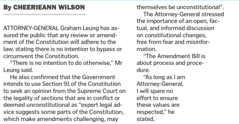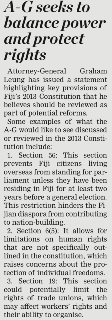 We’re still not getting a straight answer, though at least the Attorney General has cited some of the provisions the government envisages changing in this article in the Fiji Sun.