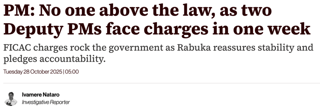 Suddenly, of course, the NFP is in even more turmoil – its leader charged with serious crimes and out of the cabinet altogether. There were already doubts about Biman Prasad’s ability to get the NFP over the 5 per cent threshold next year, such is the collapse of confidence in his leadership by many who voted for the Party in 2022. But now his political career is either in tatters or finished altogether, depending on who you talk to. And speculation is already rife about what happens next.