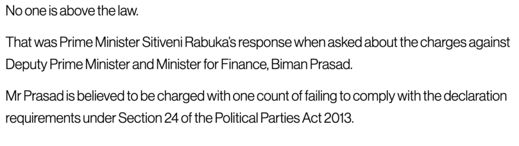 Then why hasn’t the Chief Justice been charged by the Fiji Police following the COI report?