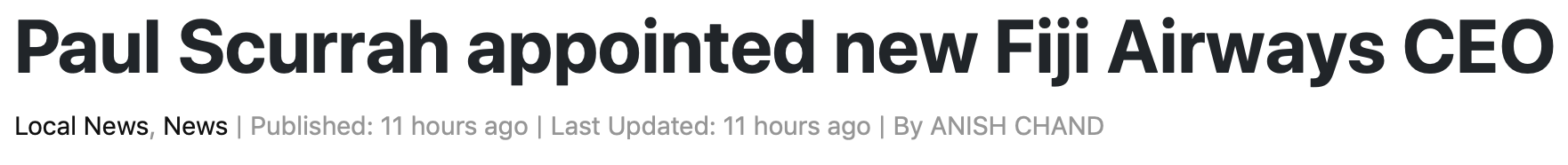 The one ray of sunshine in all the gloom this Tuesday morning is that the guardians of Fiji Airways haven’t fallen for the concerted campaign for a local to be given charge of easily our most precious national asset. We welcome the new CEO of Fiji Airways – Paul Scurrah, the former head of Virgin Australia – and wish him clear skies as he builds on the great work of the departing Andre Viljoen for the past decade.