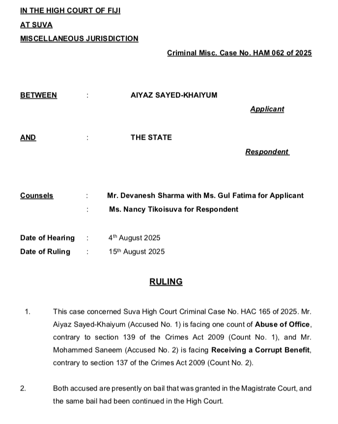 More troubling is the fact that the Chief Justice appears intent on presiding over cases involving Aiyaz Sayed-Khaiyum, Shameem, Bainimarama, and Qiliho—raising concerns about a potential personal vendetta. The law says that everyone is innocent until proven guility.