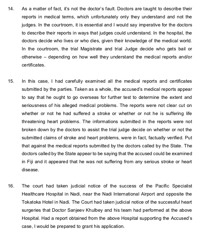 Is it that the Fiji’s Chief Justice can’t or won’t accept the recommendation made by 6 heart experts over 2 heart doctors and 1 ophthalmologist ?