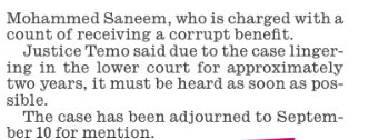 This case has been going on for about 2 years because apart from asking for bail variation to treat a serious health condition which he has granted and and came back from the incompetent DPP has been picking around with the case. The stupid dpp couldn’t make up their minds whether to charge both saneem and aiyaz individually or jointly. They dragged this issue on for a while and then decided that they wanted a high court trial. This prolonged the case even more. Musical chairs with magistrates were played by the head of the judiciary by way of Temo the clown. All this had nothing to do with Aiyaz. In the meantime Aiyaz made applications for another medical urgent review as stipulated by his doctors in Singapore. Each time he got knocked back for frivolous reasons and in their desperation the dpp even got the police to presebt a forged document and in court which alleged that Aiyaz was a Bangladeshi resident and that he would skip to Bangladesh on the pretence of going to Singapore to see his doctors. Of course the compromised magistrate did not address the forged document issue with the police and neither did the media report this absurdly stupid Bangladeshi citizen claim. The police also claimed in court that they had been ‘told” that he had property in Australia. But when quizzed by Aiyazs lawyers they couldn’t tell where in Australia his property was! The dpp and the police have lied so much in court that the police have the trembling lips syndrome every time they have been asked questions in the dock. If the courts had allowed aiyaz to travel then the trial could have started by now and most importantly Aiyaz would have been in a better state of health to have gone through the trial which is his constitutional right. Of course you lot dont give a f**k about tbe rule of law and the constitution. Simply because your hate for frank and aiyaz has blinded you just like it’s blinded this corrupt chaotic govt and judiciary.