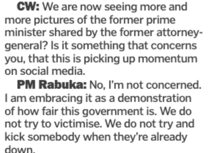 There are three pages of subservient drivel that I will spare my own readers. Needless to say, there is not a word about the Malimali Commission of Inquiry or the events at the ODPP.