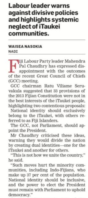 They do not represent indigenous Fijians.