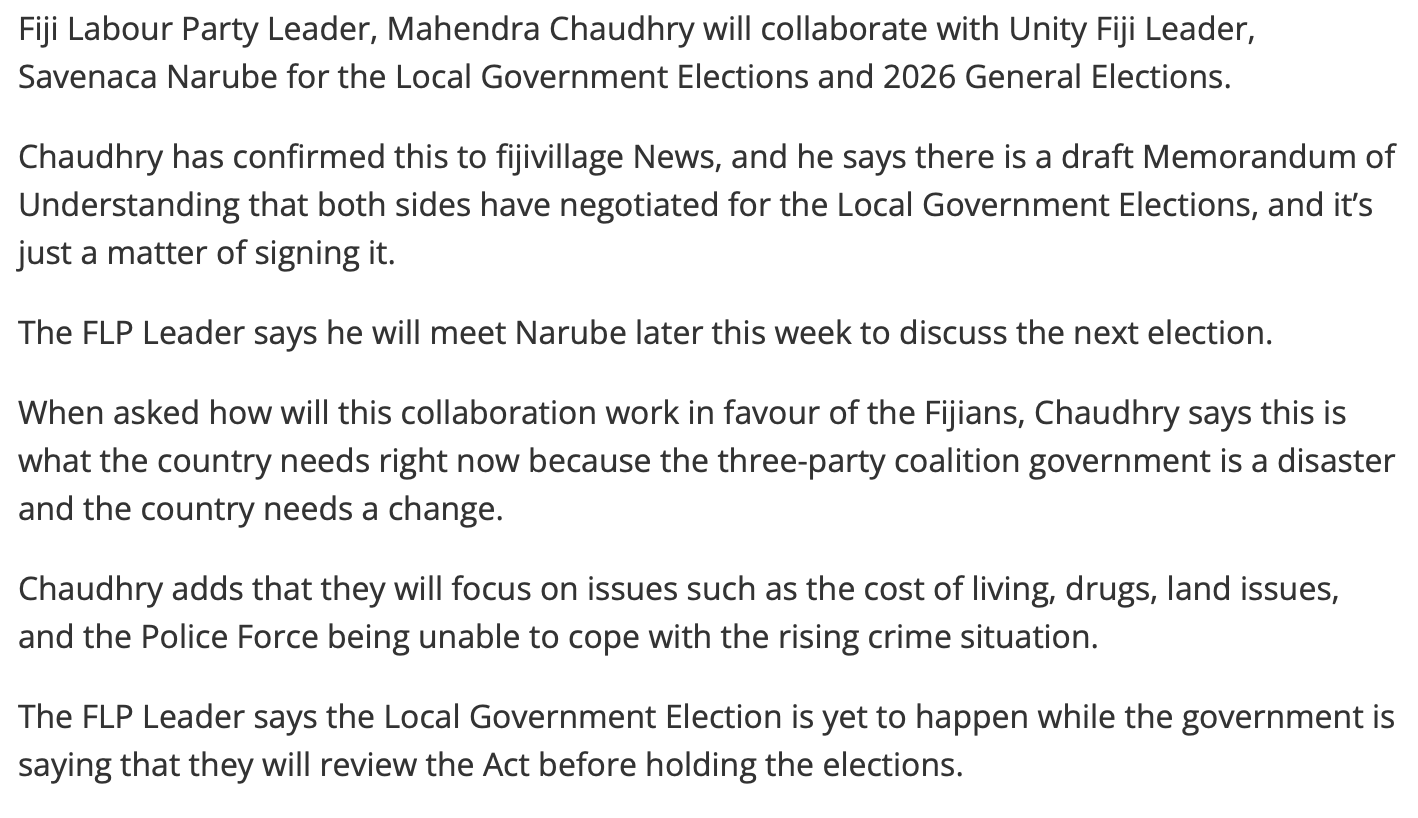 If anything, Chaudhary and Narube should have done this last elections, at least they would have had some leverage now. In 2026, no one will vote for them. The people in fiji just hate each other too much now.
