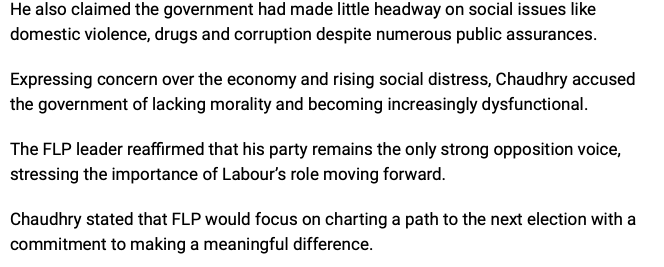As for FLP, Chaudhry is tainted and NFP will make sure everyone knows that. And they don’t have a credible emerging leader.