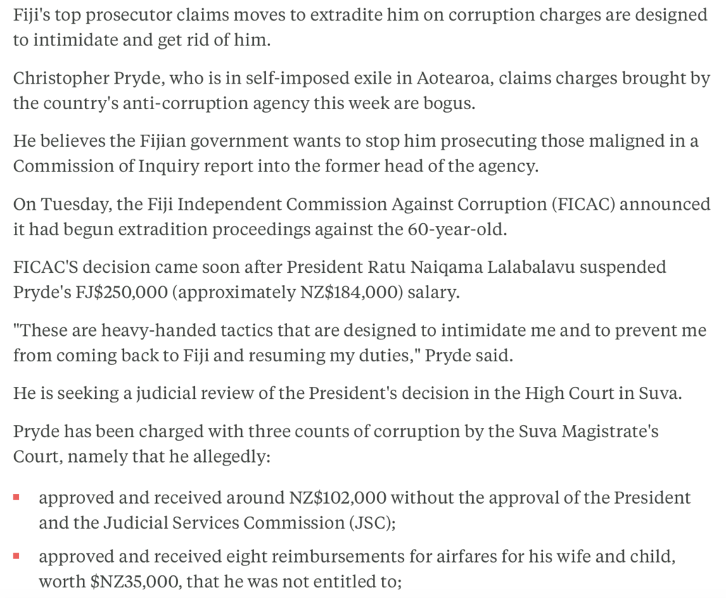 “Will the NZ authorities accede to the apparent extradition request made by Fijian authorities?”