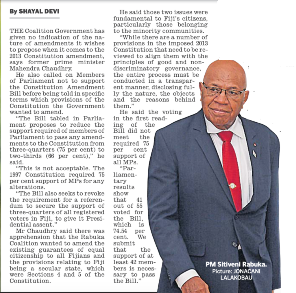 If this Bill is passed, it will signify their submission to Rabuka’s agenda. This move would make it easier for Rabuka to change the constitution with a reduced majority requirement and no need for a referendum.