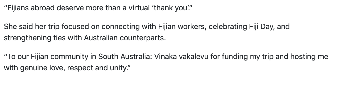 The evidence so far is that she, and they, are engaged in a cover-up. And they can demonstrate otherwise by finally doing their jobs properly, starting with reporting Mahendra Chaudhry’s statement and interviewing Tema Rasoki Windust and and Mere Tauvoli, the two women who have made statements on social media that the mainstream media is so far ignoring.