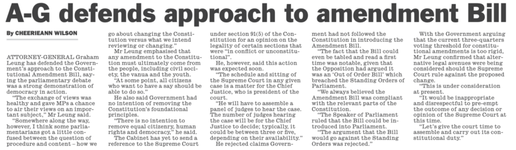 From the AG in the FT article “A-G defends approach to amendment Bill” today: