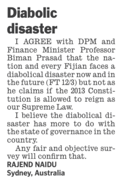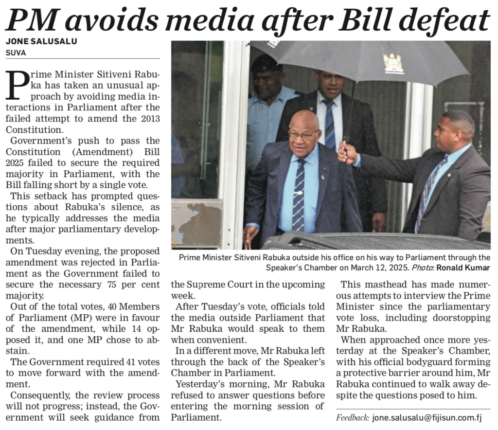 The big question: Is it the fear of losing the next general election making Rabuka, Biman, and their Coalition government so desperate to change the constitution to their advantage? Something to think about.