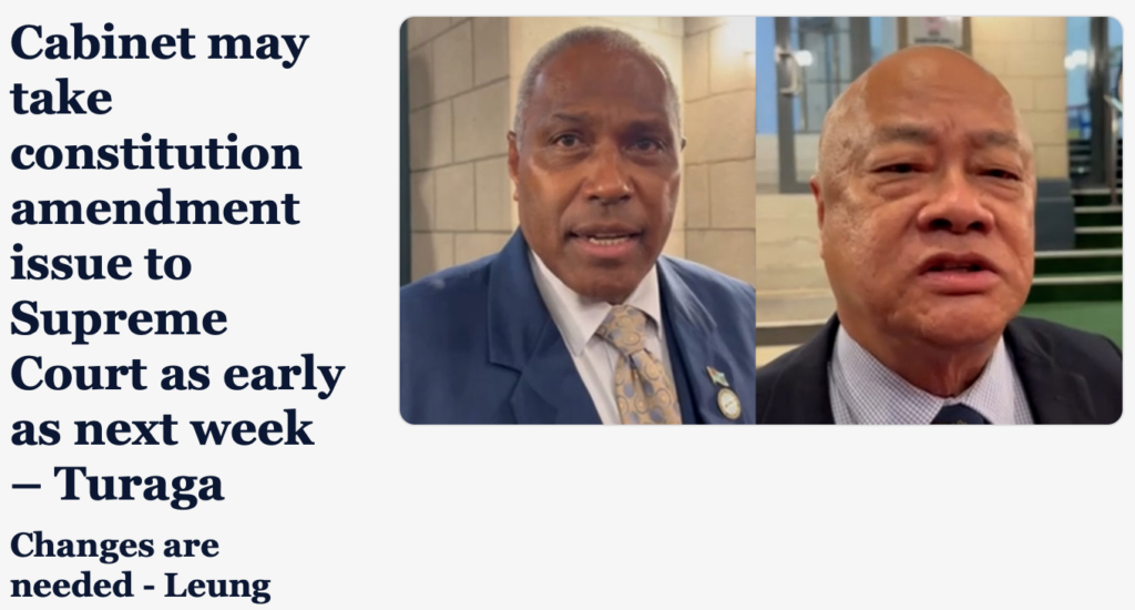 Or will he take a more acceptable path for those looking for proper process to be followed? And that is to set up a panel of judges not including himself to advise on the legality of changing the Constitution. In the same way that Salesi Temo did when three Supreme Court judges ruled that the Judicial Services Commission’s choice of John Rabuku to be acting DPP was unlawful because the Constitution specifically prohibits anyone found guilty of professional misconduct from holding the position. (Not surprisingly, Salesi Temo has since said that he wants that provision changed).