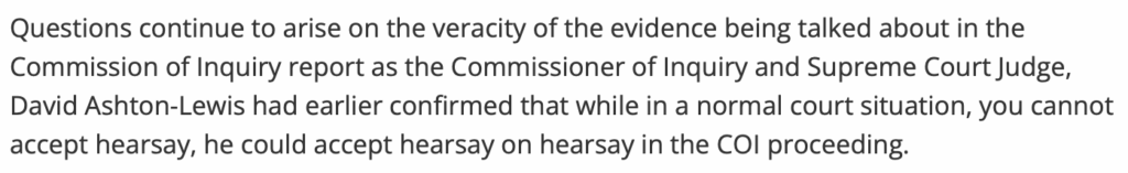 In almost every story Vijay writes, he dwells on the following offhand remark made by Justice David Ashton-Lewis in his Queensland radio interview to cast doubt on the entire Commission of Inquiry.