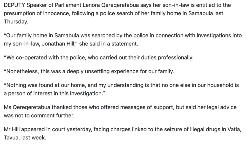 Or what about Lenora Qereqeretabua? Equally unlikely. Even before her current bruising experience in the spotlight as her son-in-law is charged with drug trafficking, some of those close to Lenora were saying she was unlikely to stand for parliament again. She evidently hopes to use her experience as a successful Deputy Foreign Minister to follow the respected former FijiFirst MP, Mere Rakuita, into a senior job in one of the regional organisations.