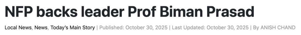 Small wonder then that talk within the Party has gone from “unwavering support” to the first signs of political reality finally dawning and active discussion about a leadership change. And the word is that it is being driven at the very top of the NFP by the man who was originally “unwavering” – the Party’s President, Parmod Chand.