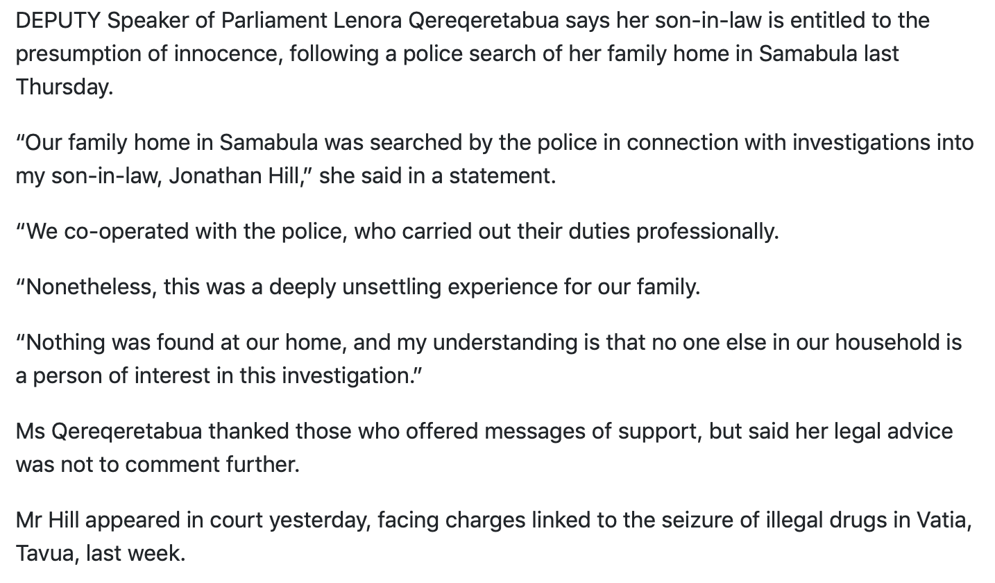 Or what about Lenora Qereqeretabua? Equally unlikely. Even before her current bruising experience in the spotlight as her son-in-law is charged with drug trafficking, some of those close to Lenora were saying she was unlikely to stand for parliament again. She evidently hopes to use her experience as a successful Deputy Foreign Minister to follow the respected former FijiFirst MP, Mere Rakuita, into a senior job in one of the regional organisations.