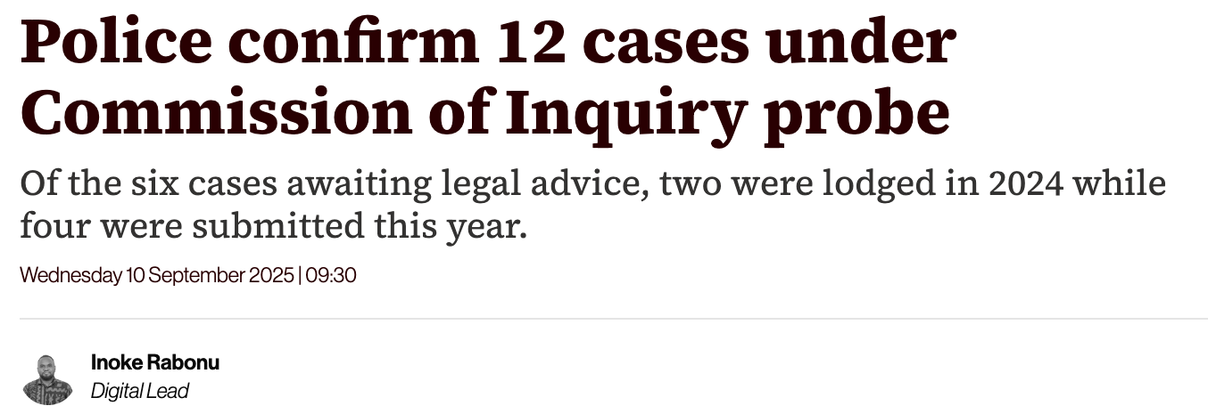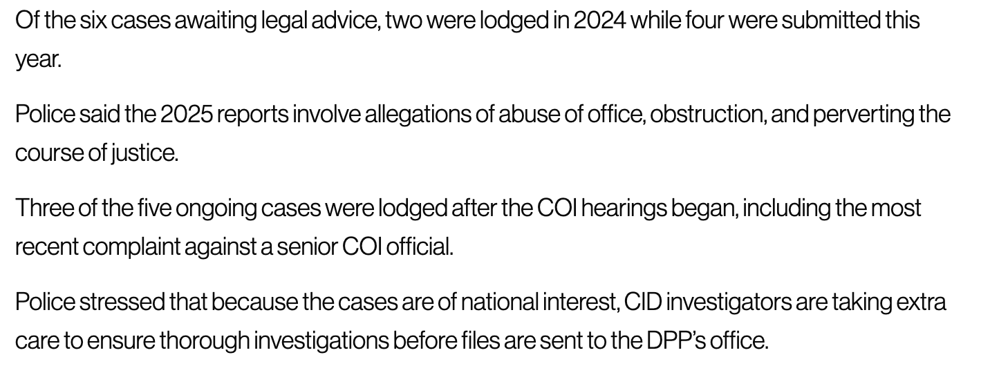 The Fiji Police are making a virtue of taking their time to investigate cases arising out of the Supreme Court Commission of Inquiry because of their importance. Yet the whole process is compromised because any decision to prosecute is going to be taken by individuals adversely named in the COI Report.