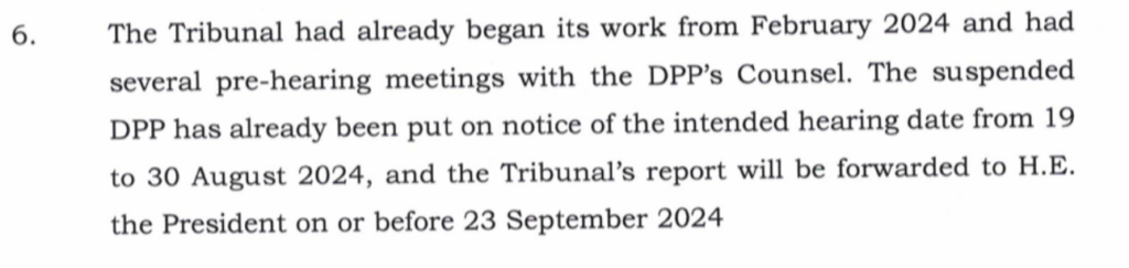 4/ And he has humiliated the Prime Minister by ignoring his admonition to restore Christopher Pryde’s salary and humiliated His Excellency the President of the Republic by giving him successive deadlines to set for the conclusion of the case against Pryde that Temo must know can’t be met.