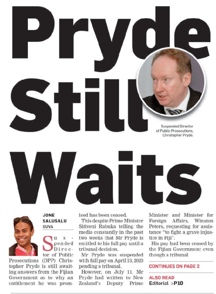 If the Rabuka had any balls he would direct the Finance Minister to pay Christopher Pryde until the matter of his suspension is finalised!