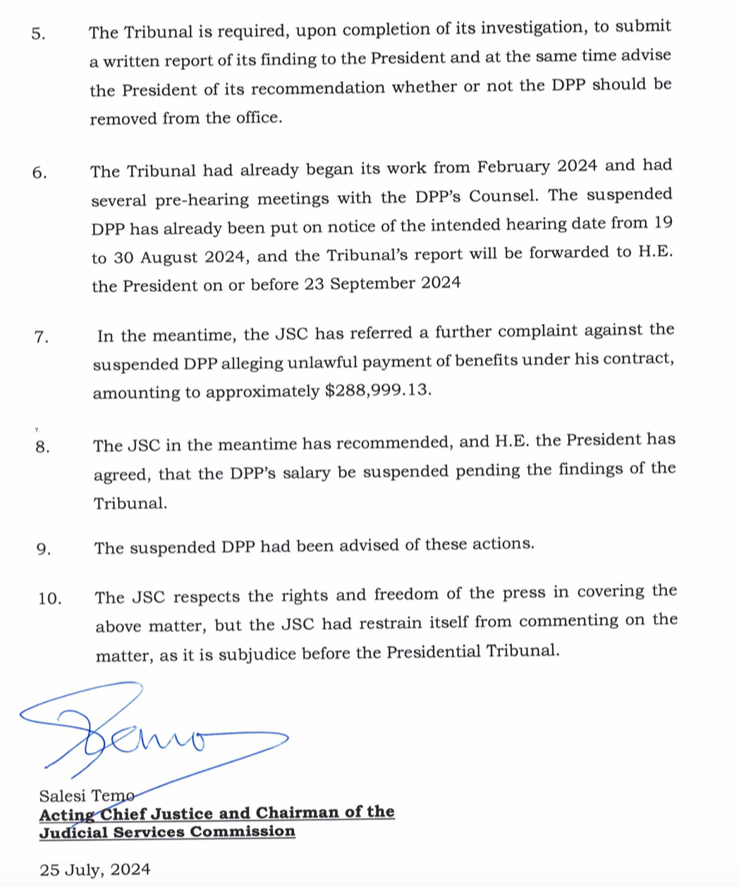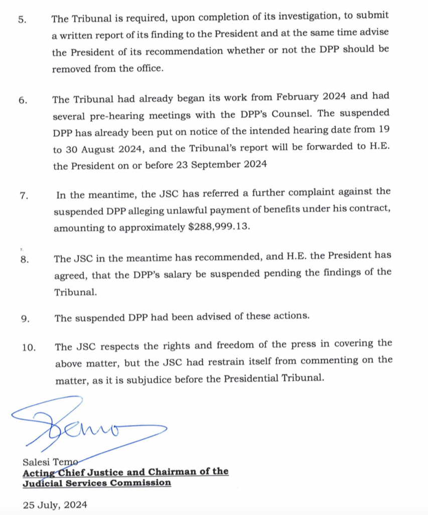 In an unprecedented media release in July after the Prime Minister said it was wrong for the JSC to have suspended Christopher Pryde’s salary, here’s an extract of what the Acting Chief Justice told the nation confirming todays deadline. (full statement below)