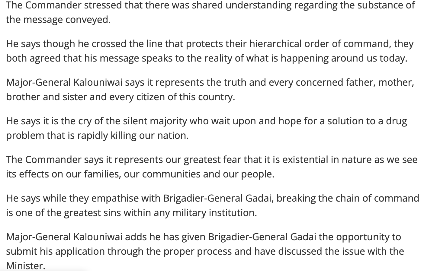 To be read in conjunction with our previous articles. And don’t miss the comments, which are reflecting support for Manoa Gadai and criticism of Commander Kalouniwai.