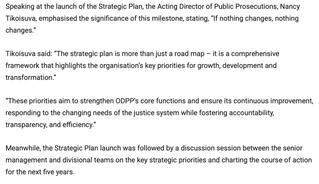 …including prize idiots ( as well as the corrupt) at the nation’s prosecution service. A stellar example of the “wisdom” of Nancy Tikoisuva.