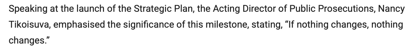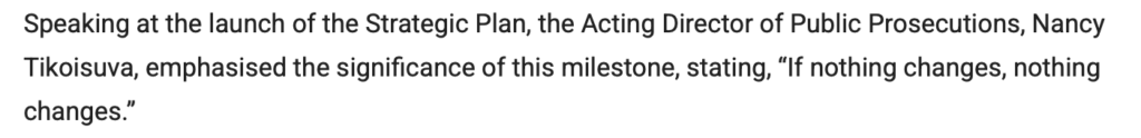 …including prize idiots ( as well as the corrupt) at the nation’s prosecution service. A stellar example of the “wisdom” of Nancy Tikoisuva.