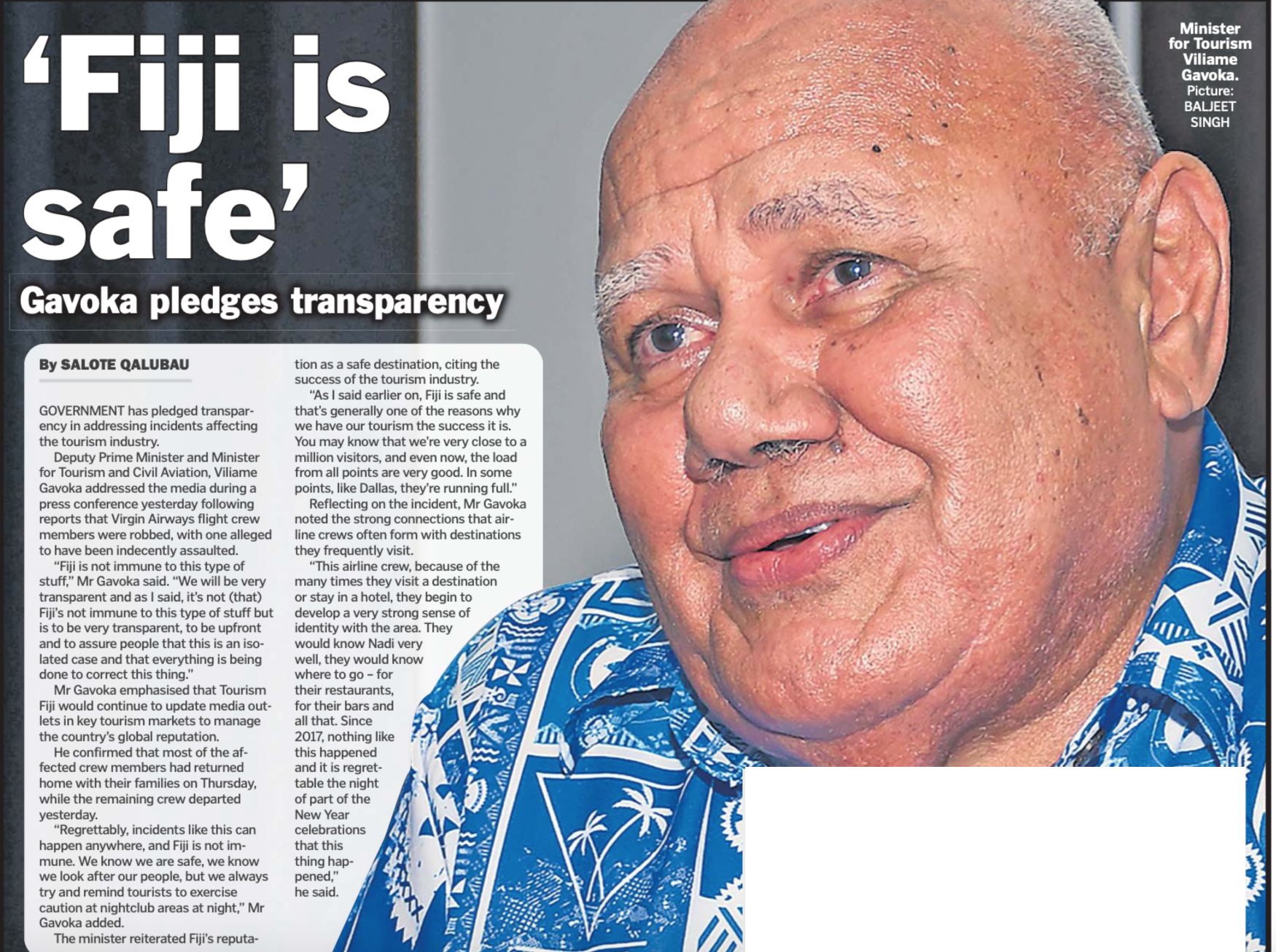 The Minister for Tourism Bill Gavoka adopted a defensive stance without ascertaining the facts, blaming the media for sensationising the incident. His dismissive comment that this could have happened anywhere is not only a shallow defense but also fails to address the gravity of the situation.