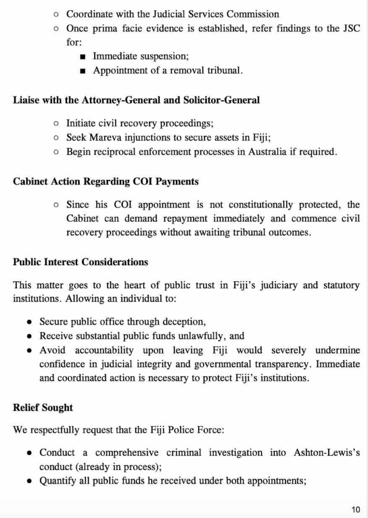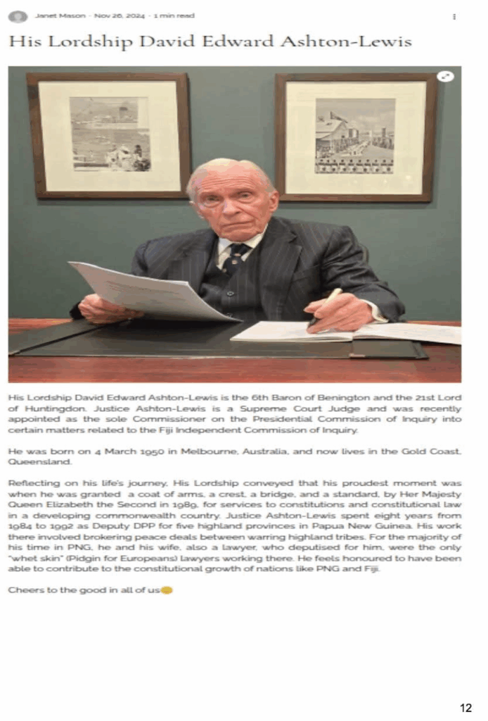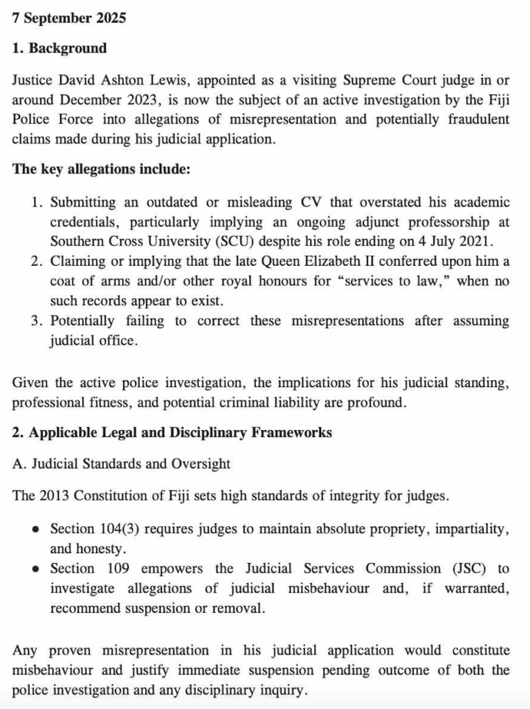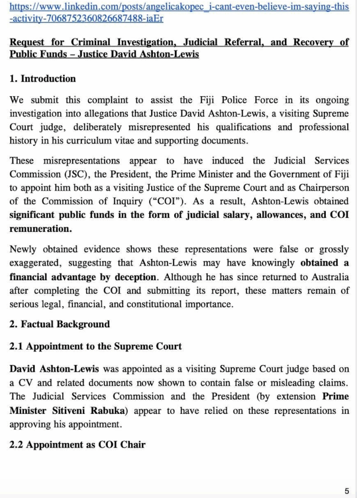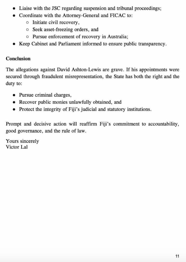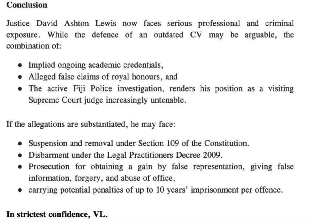 It’s now Grubsheet’s sorry duty to turn the tables on Victor Lal and leak the extraordinary contents of his complaint of misconduct against Justice David Ashton-Lewis plus accompanying correspondence to the Police Commissioner, Rusiate Tudravu. It shows that Victor Lal has sided with his British compatriot, Charlie Charters, in feeding Salesi Temo and the JSC the ammunition they presumably think he needs to upend the Commission of Inquiry.