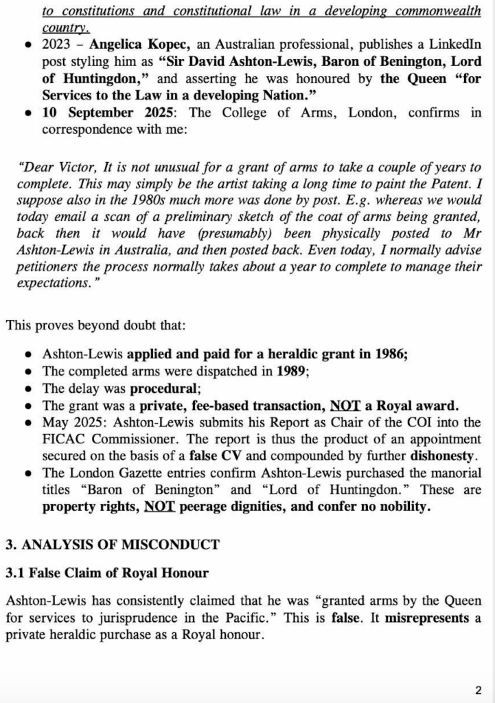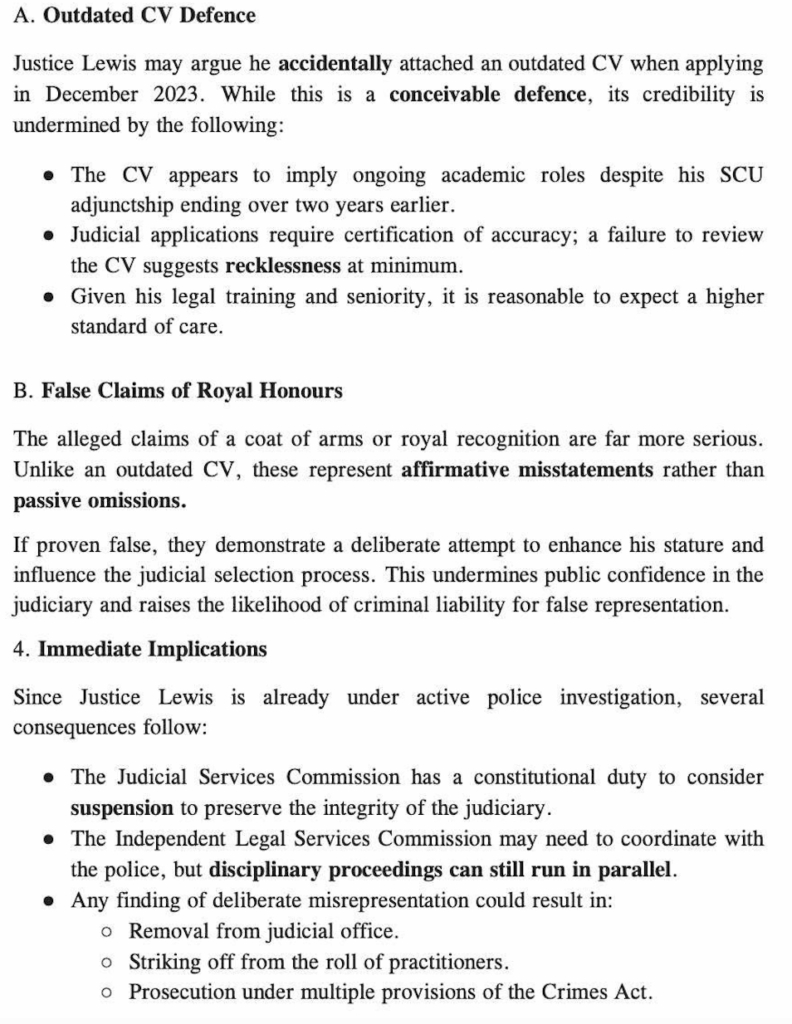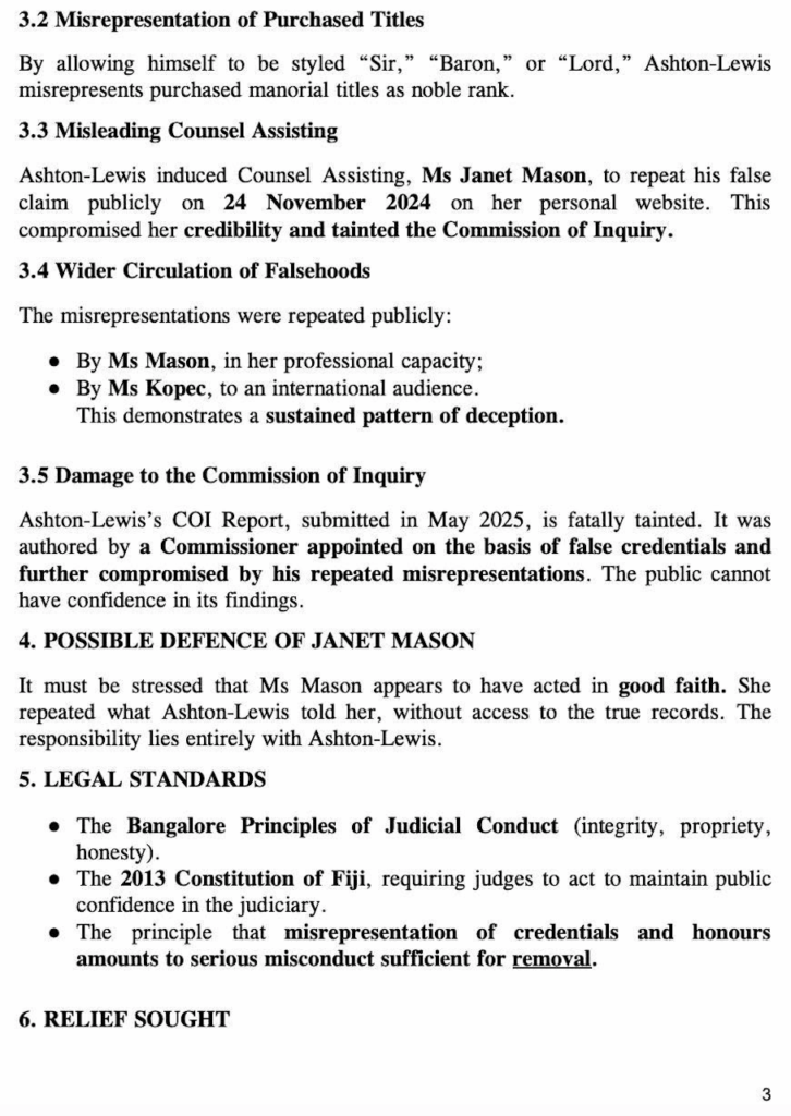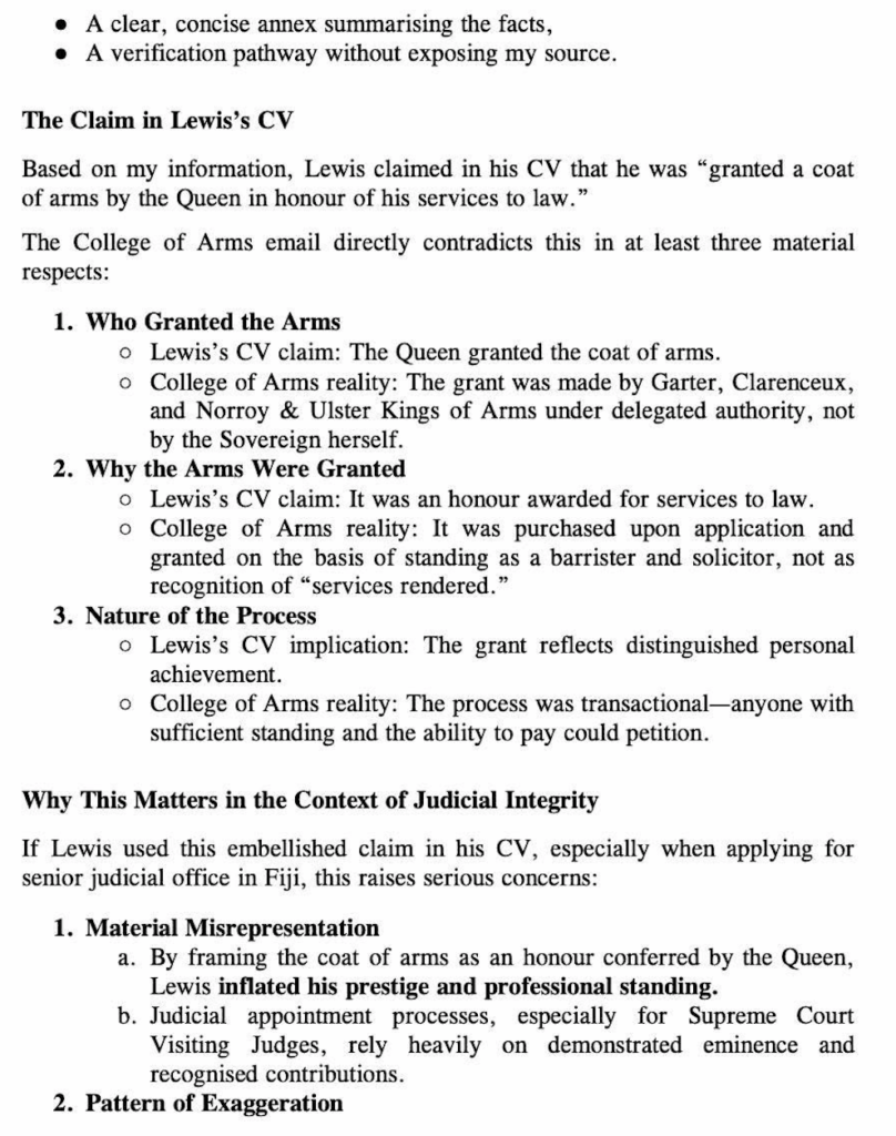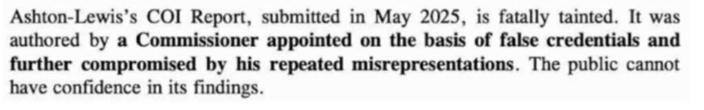 Sadly for Victor Lal, not only has he been exposed but the tactic isn’t going to work. Why? Because his complaint doesn’t relate to any of the substance of the findings of the COI but allegations that Justice Ashton Lewis “may have” misrepresented some of his accomplishments, including allegedly claiming a “false royal honour”.