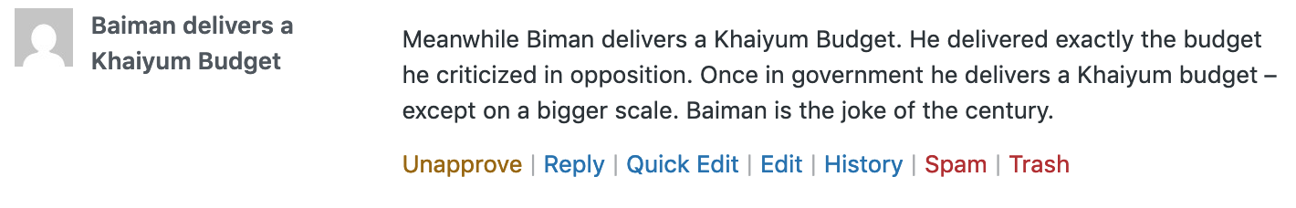 Khaiyum is a bush lawyer. Biman is a professor of Economics. So let’s not compare Biman’s budget with Kai.