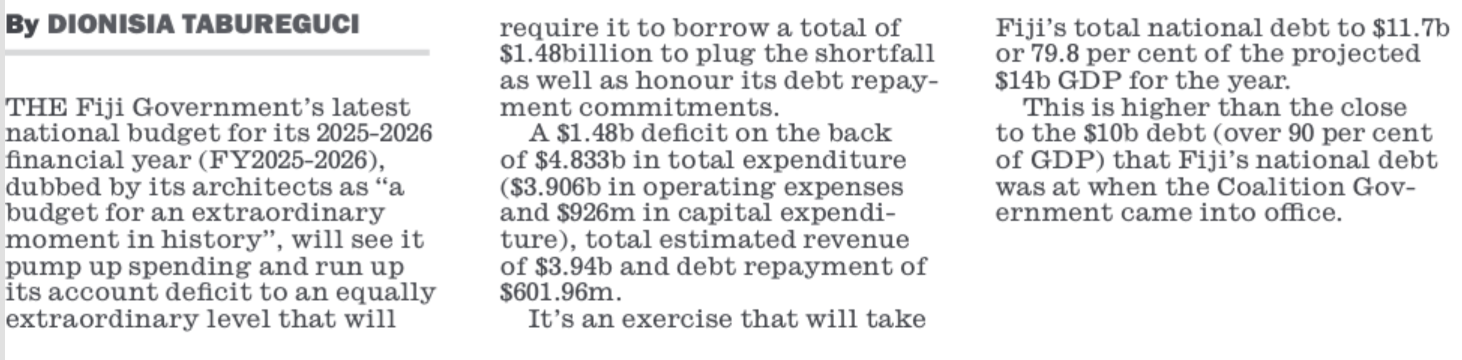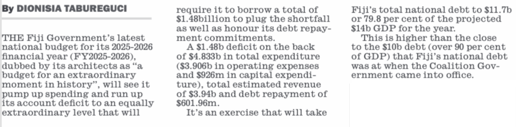 Yet even the Fiji Times can’t escape the truth in its main story – that Biman’s big spend-up to buy votes next year is coming at a terrible price.