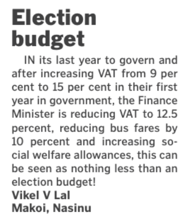 In reply to Baiman delivers a Khaiyum Budget.