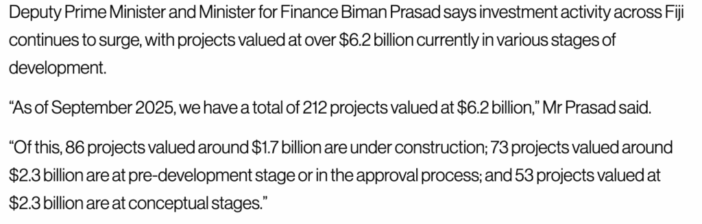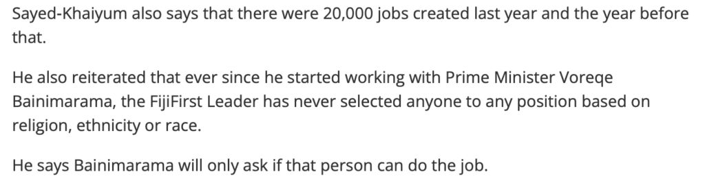 Here’s what Baimaan is saying when the minimum wage in Fiji is currently $5 an hour. He’s asking us to believe that in 25 years, Fijian workers won’t have to go overseas for higher paid jobs because they’ll be available right here.