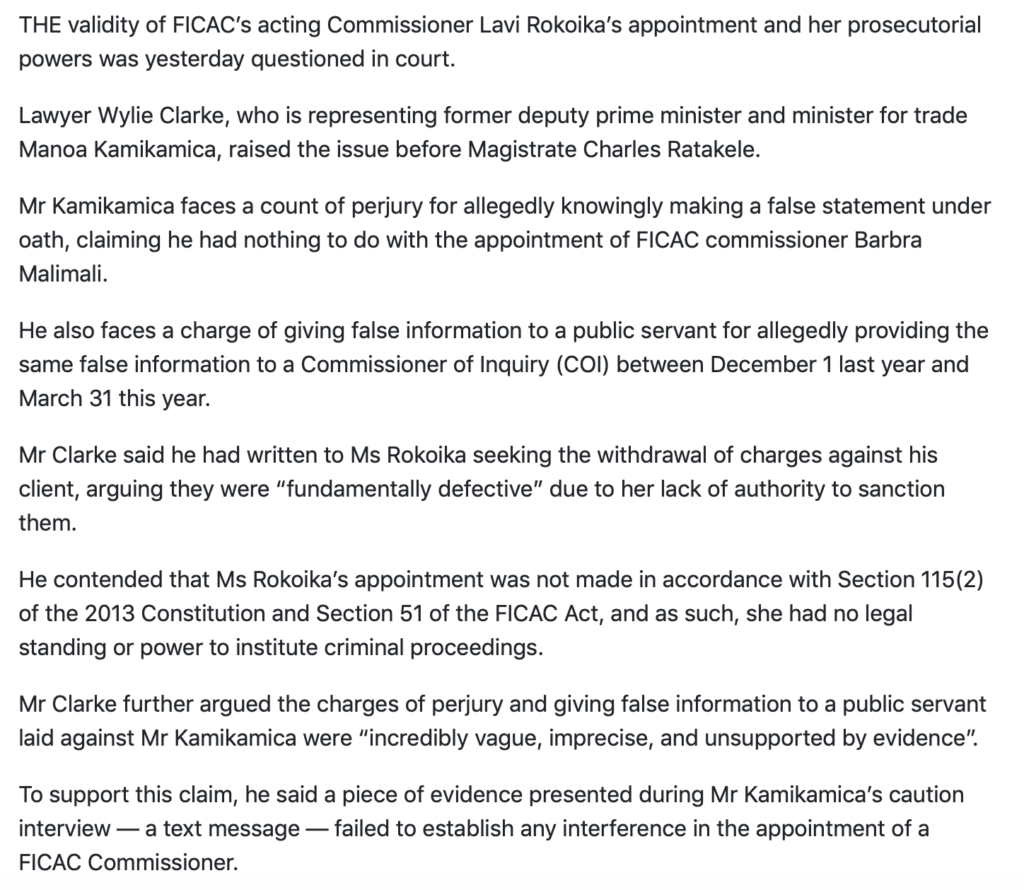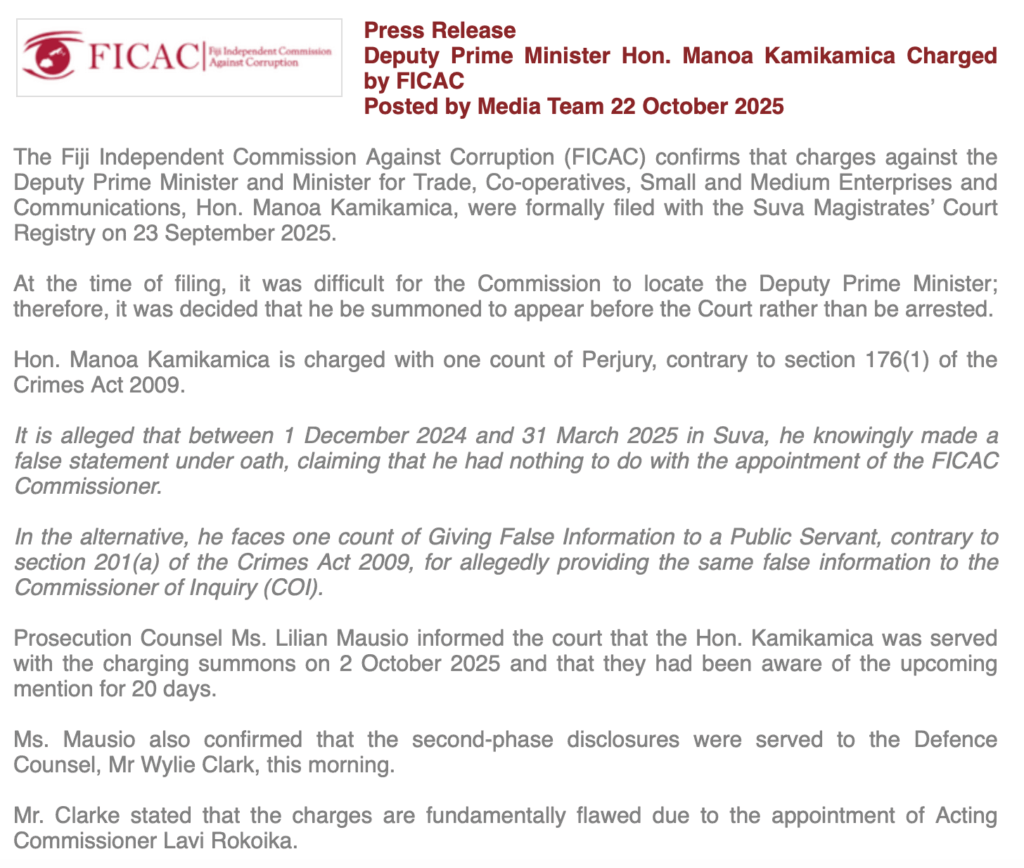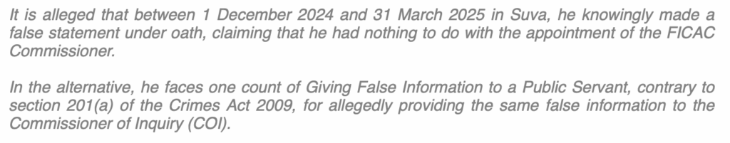 Now background documents – first the FICAC charges against Manoa Kamikamica: