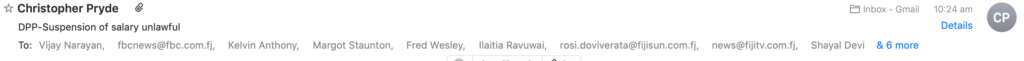 As we’ve done before, we are publishing proof that emails from Christopher Pryde have been directed to the Fiji Sun, including its Managing Director, Rosi Doviverata, yet the contents still haven’t been accurately reported.
