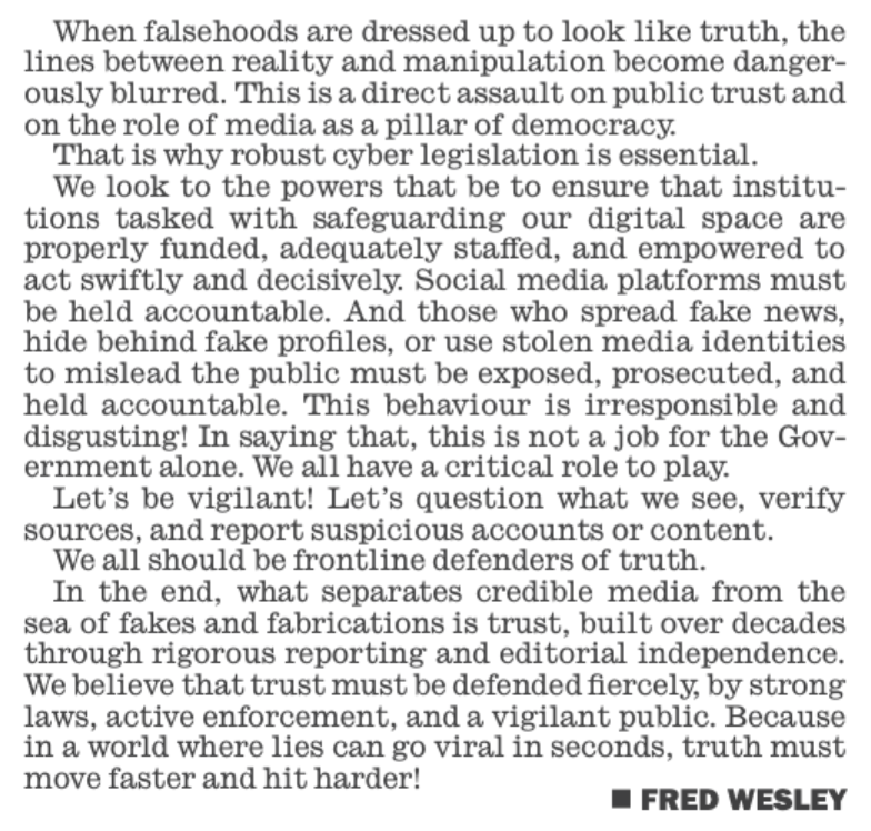 Fred Wesley and his cohorts have interpreted the supposed new era of media freedom as the freedom to ignore the most basic standards of proper journalism. Yet like some pedophile priest, he adopts a posture of righteousness from his daily pulpit that is vastly at odds with the paper’s actual conduct.